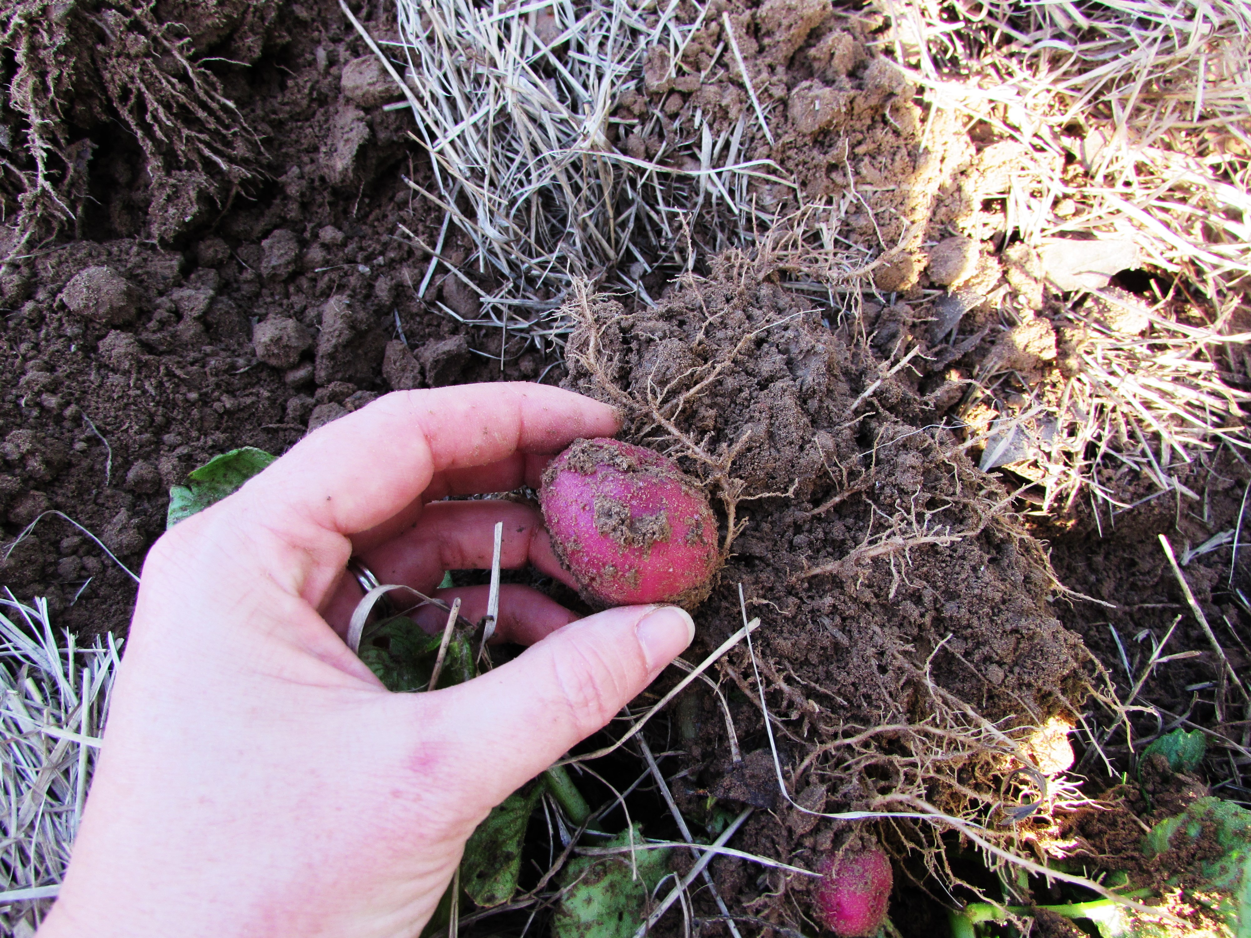 As you may have seen in previous posts, weeding isn’t my strong point. However I can do one thing, I can grow some pretty ‘taters! Potatoes are, without a doubt, my favorite veggie to grow. You plant them on Valentine’s Day, a perfectly romantic thing to do, then dig’em up around Memorial Day, just in time for a cookout! Harvesting them is like a little treasure hunt, you never know exactly what is hiding under the earth.