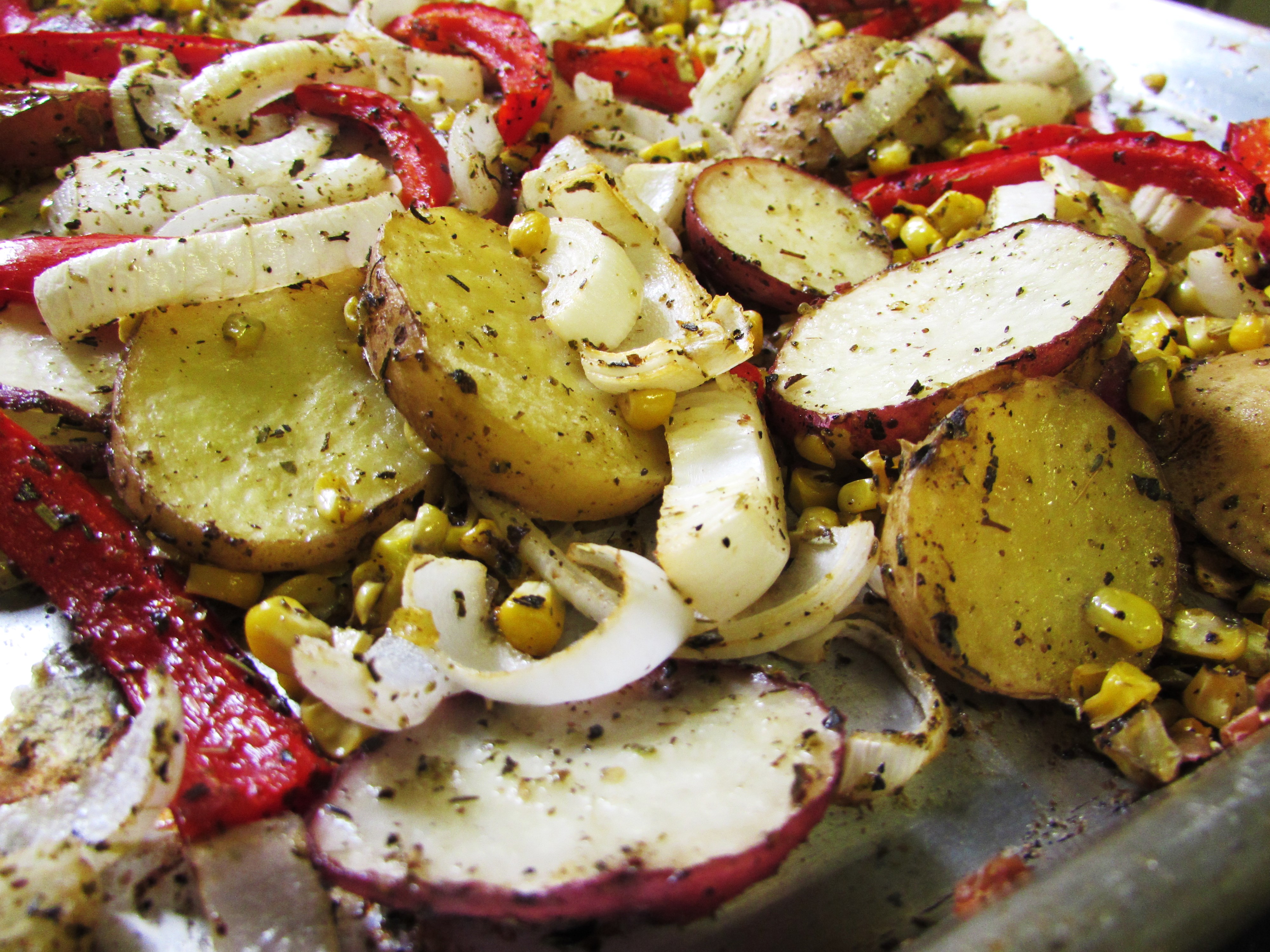 Roasted potatoes fresh from the earth, now THAT’S what I’m talkin’ about! See the Yukon Gold, how bright and buttery they are? I’ll pick them out just like a kid will dig thru a bag of Ranch Doritos for the one with the most ‘stuff’ on it. Or maybe that’s just me.