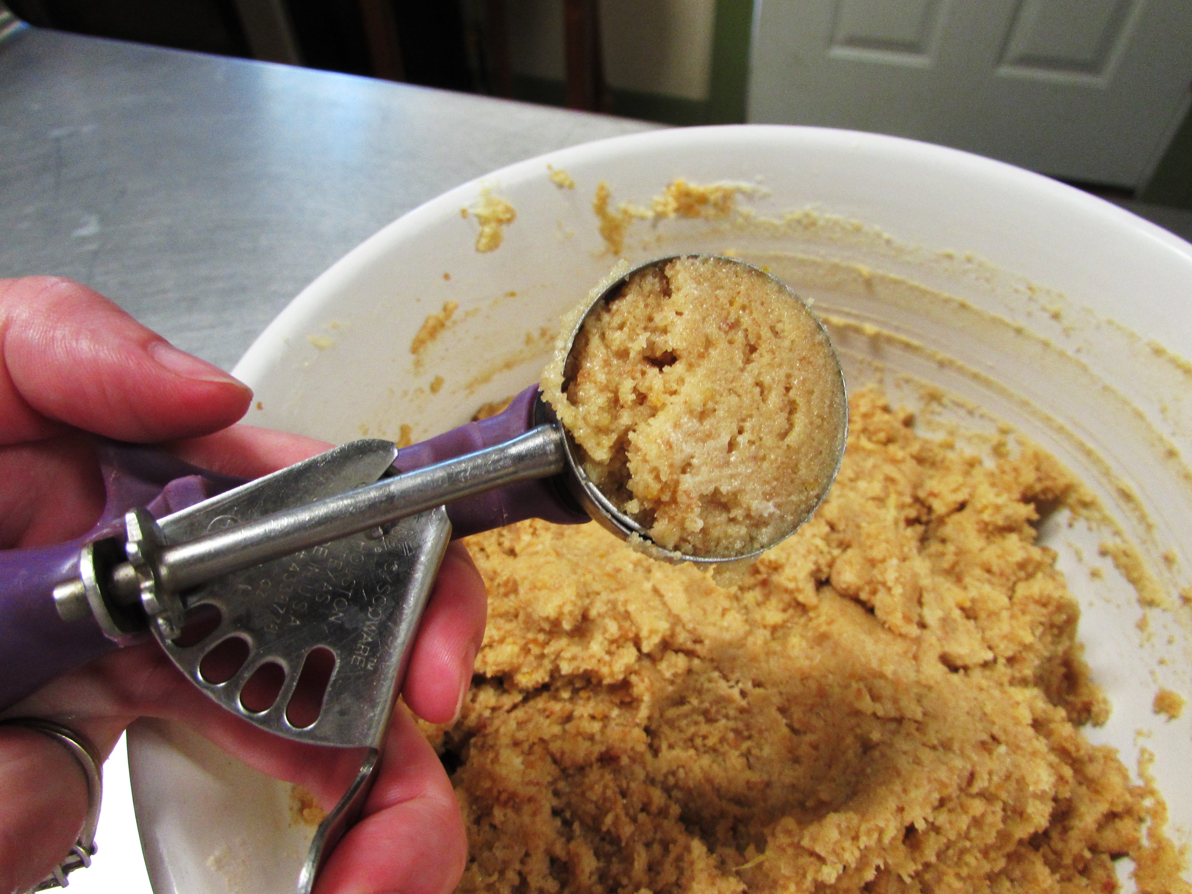 See how it is all held together and looks like cookie dough? This is perfect. Grab a small cookie scoop and get scooping!