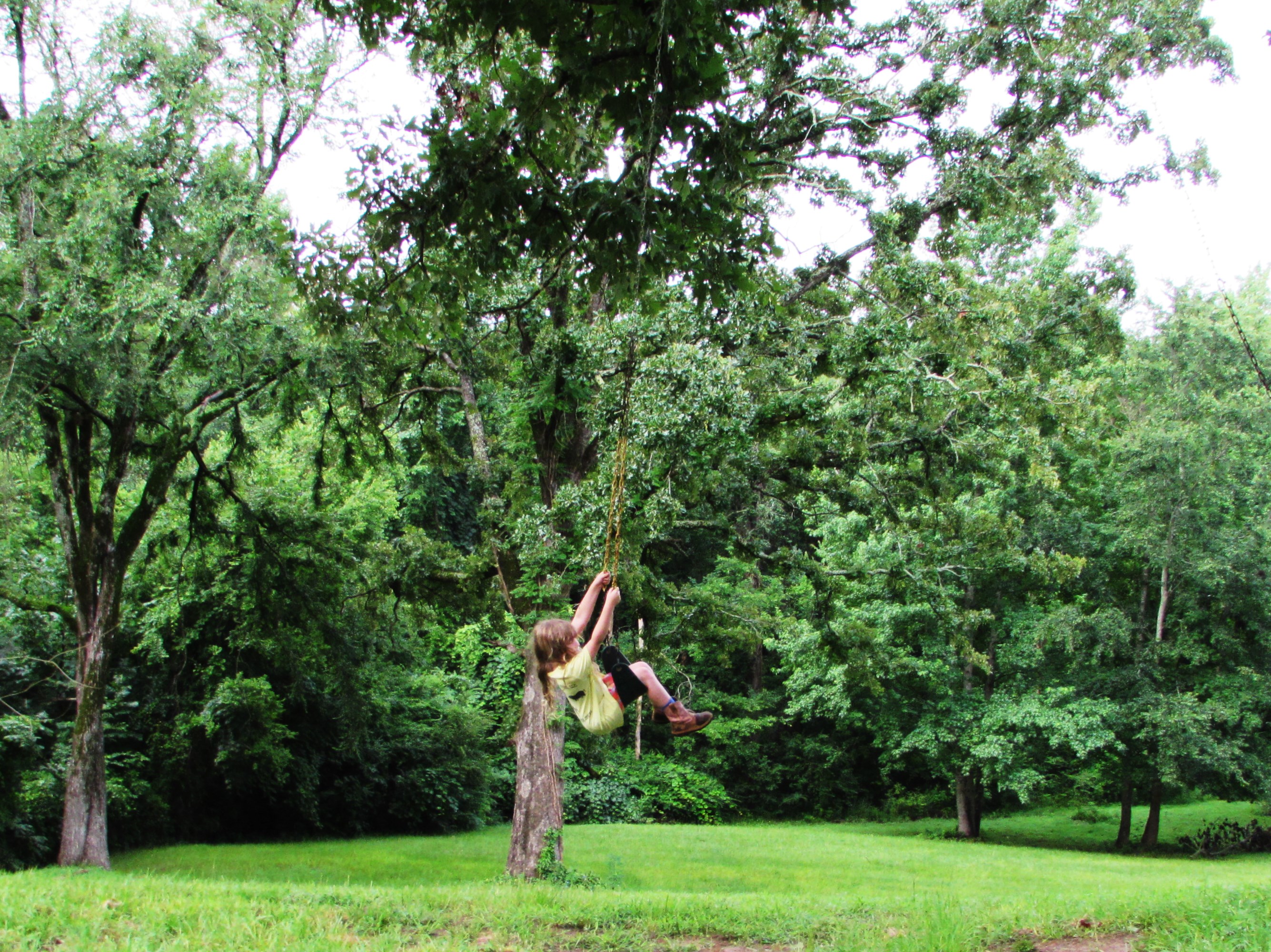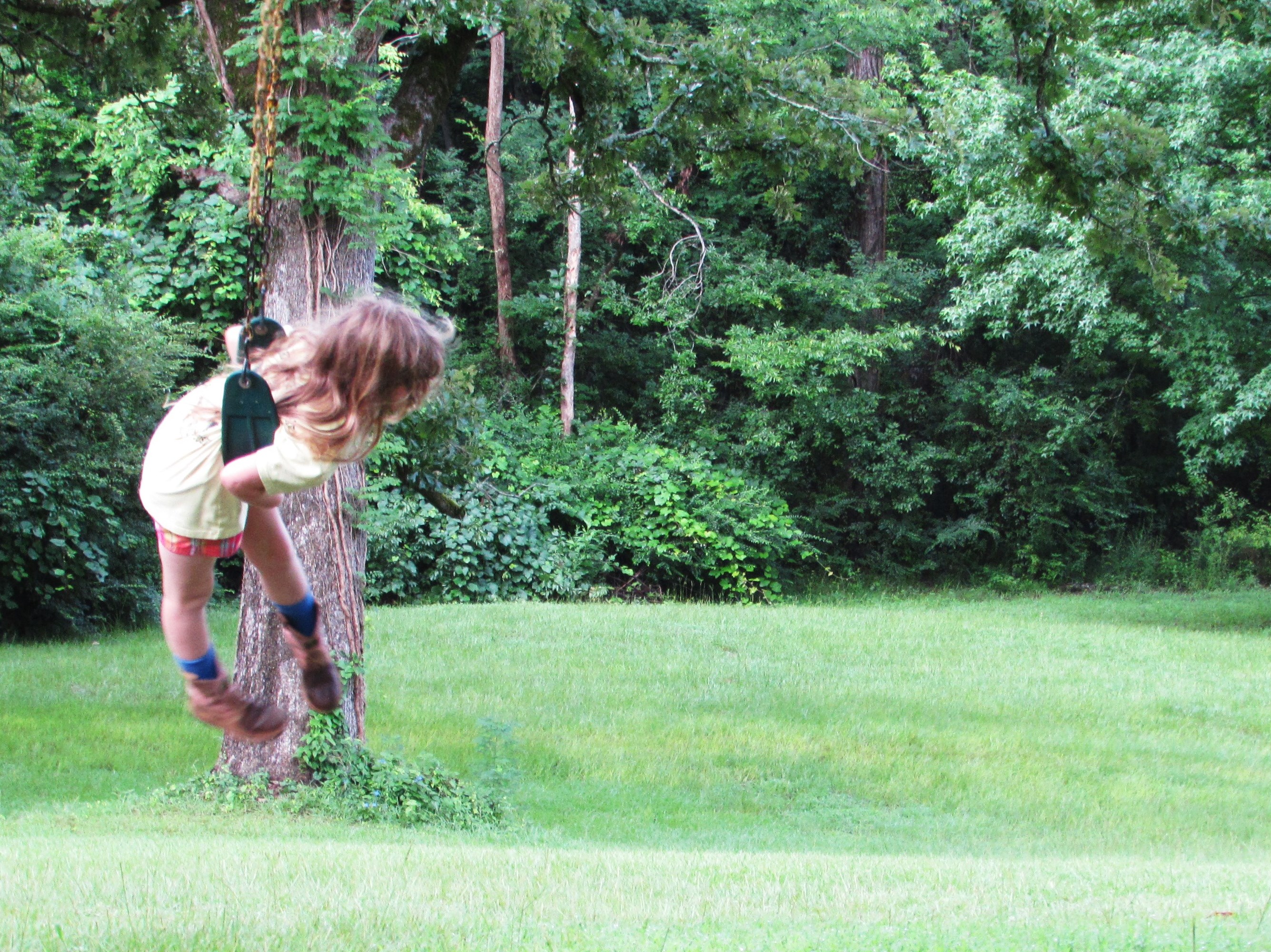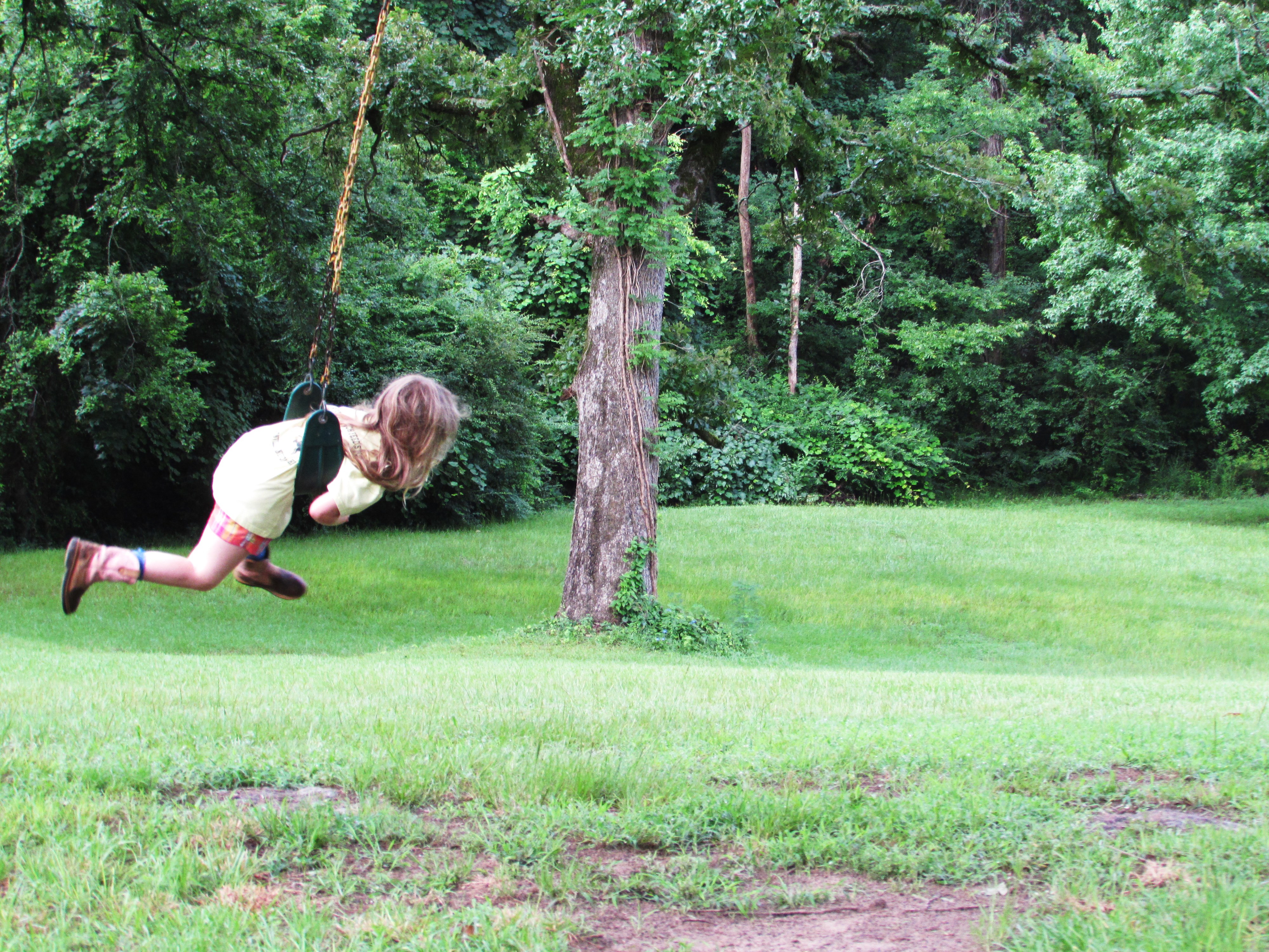 I haven’t thought much about swinging lately. Swinging like in a swing not ……..never mind. Anyway. My grandparents used to have this huge tire swing behind their barn, it was made from a tractor tire and was held in the massive Blackjack Oak by a grass rope that looked like it came off the Titanic. A serious rope for a serious swing. I remember flying thru the air, completely weightless and completely giddy. I haven’t felt weightless and giddy since. At least not at the same time. However, I watched Addie swinging at a friends house recently and remembered, if only for a moment, how it felt. I thought I’d share the moment with you.