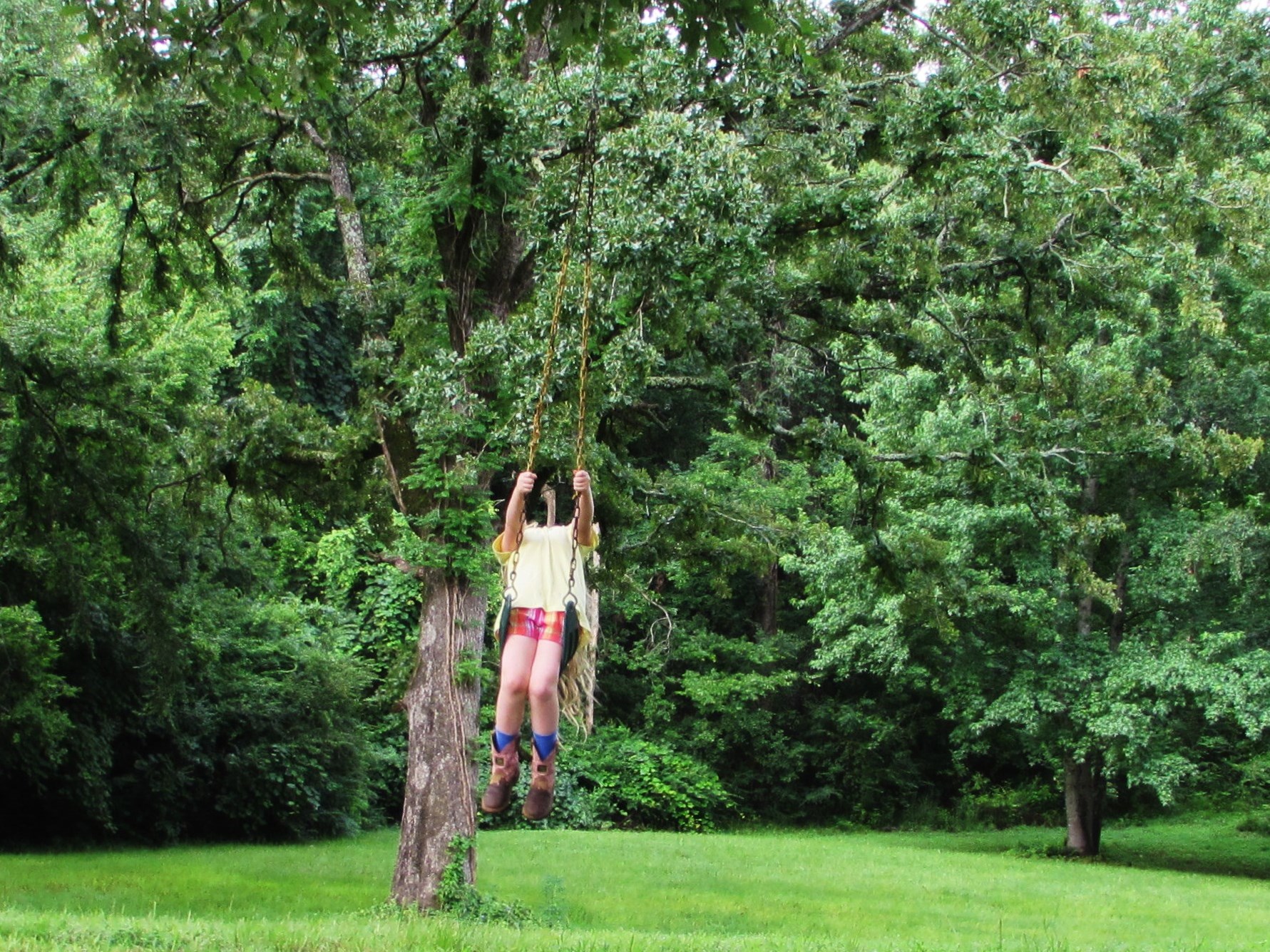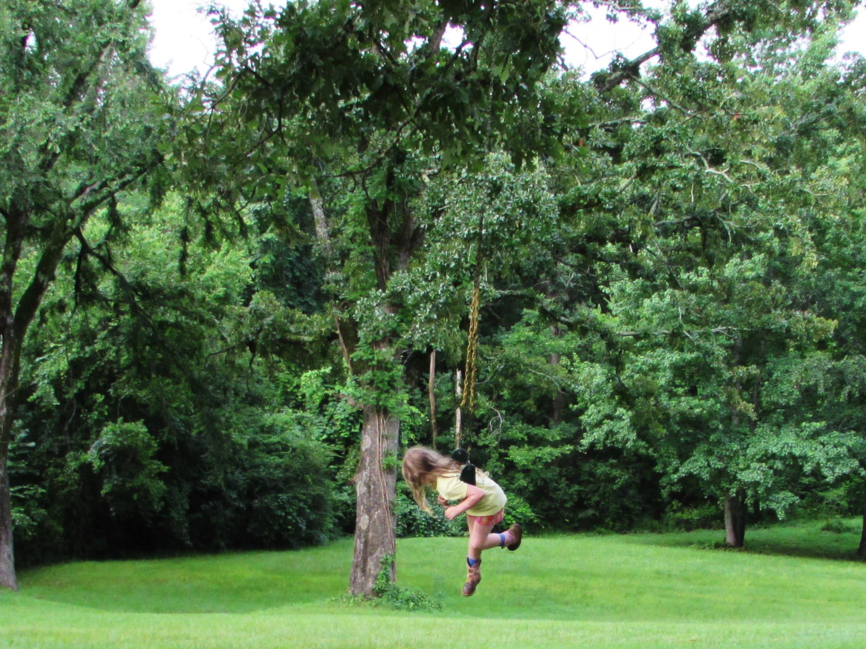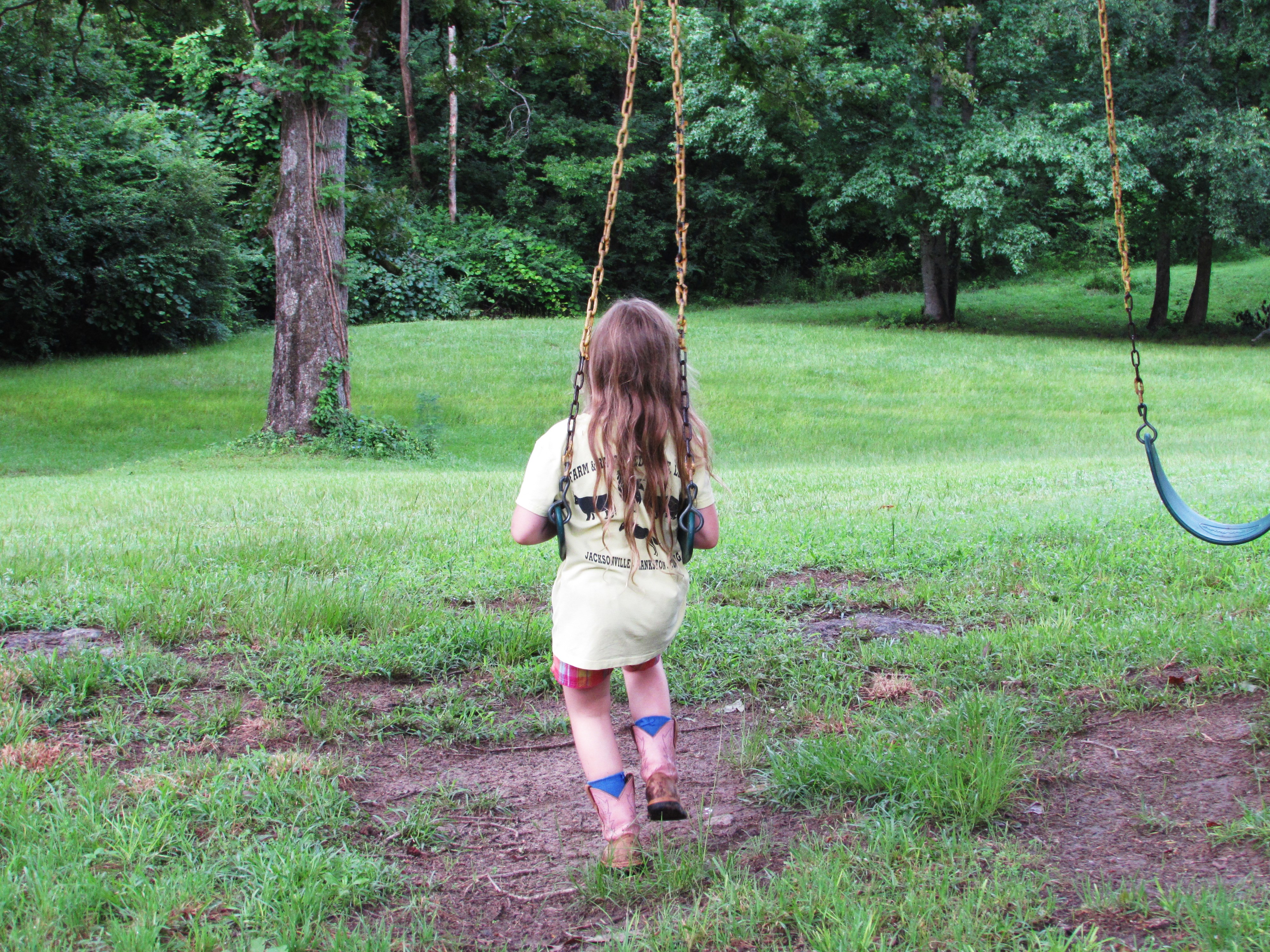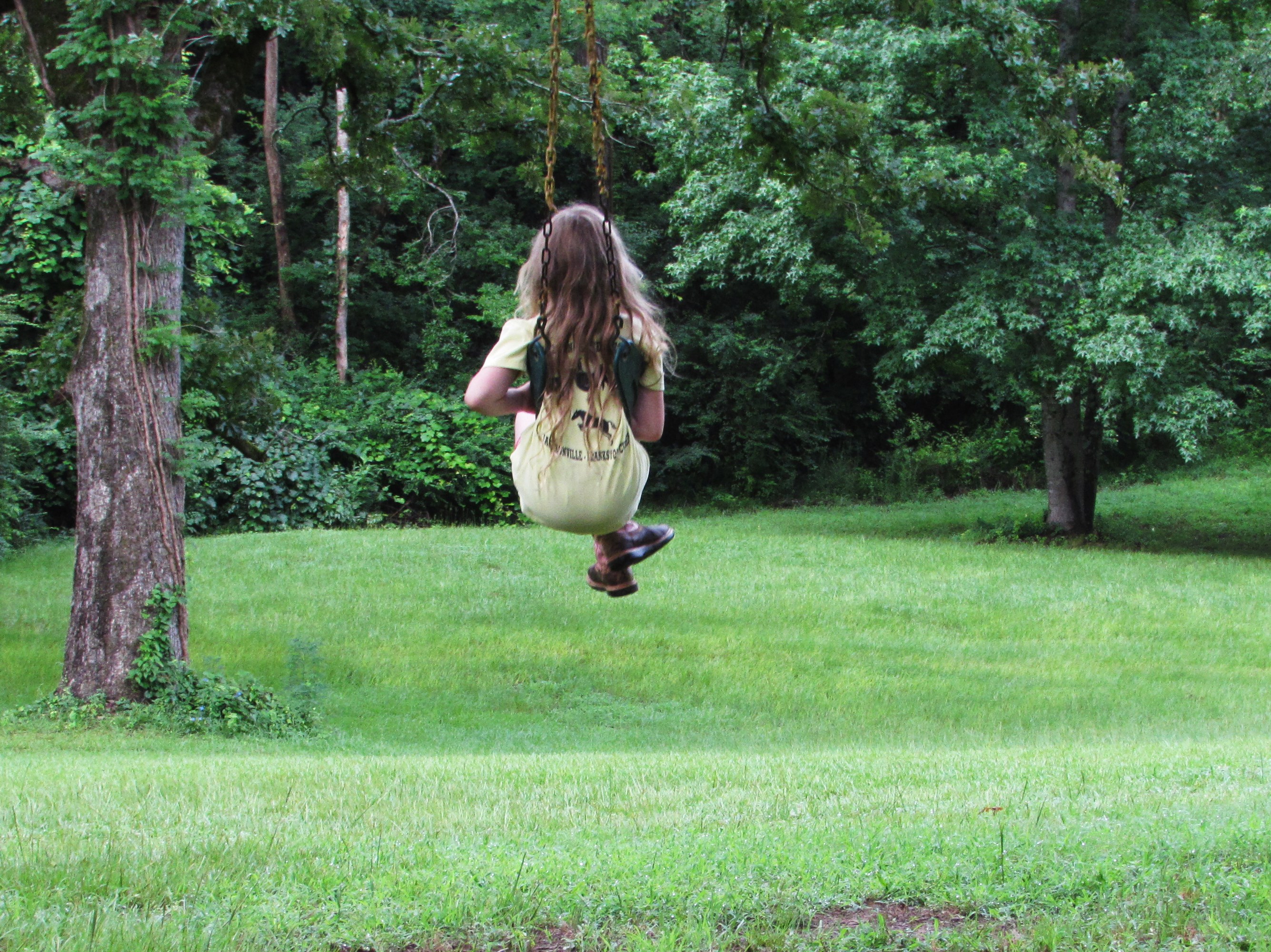 I haven’t thought much about swinging lately. Swinging like in a swing not ……..never mind. Anyway. My grandparents used to have this huge tire swing behind their barn, it was made from a tractor tire and was held in the massive Blackjack Oak by a grass rope that looked like it came off the Titanic. A serious rope for a serious swing. I remember flying thru the air, completely weightless and completely giddy. I haven’t felt weightless and giddy since. At least not at the same time. However, I watched Addie swinging at a friends house recently and remembered, if only for a moment, how it felt. I thought I’d share the moment with you.