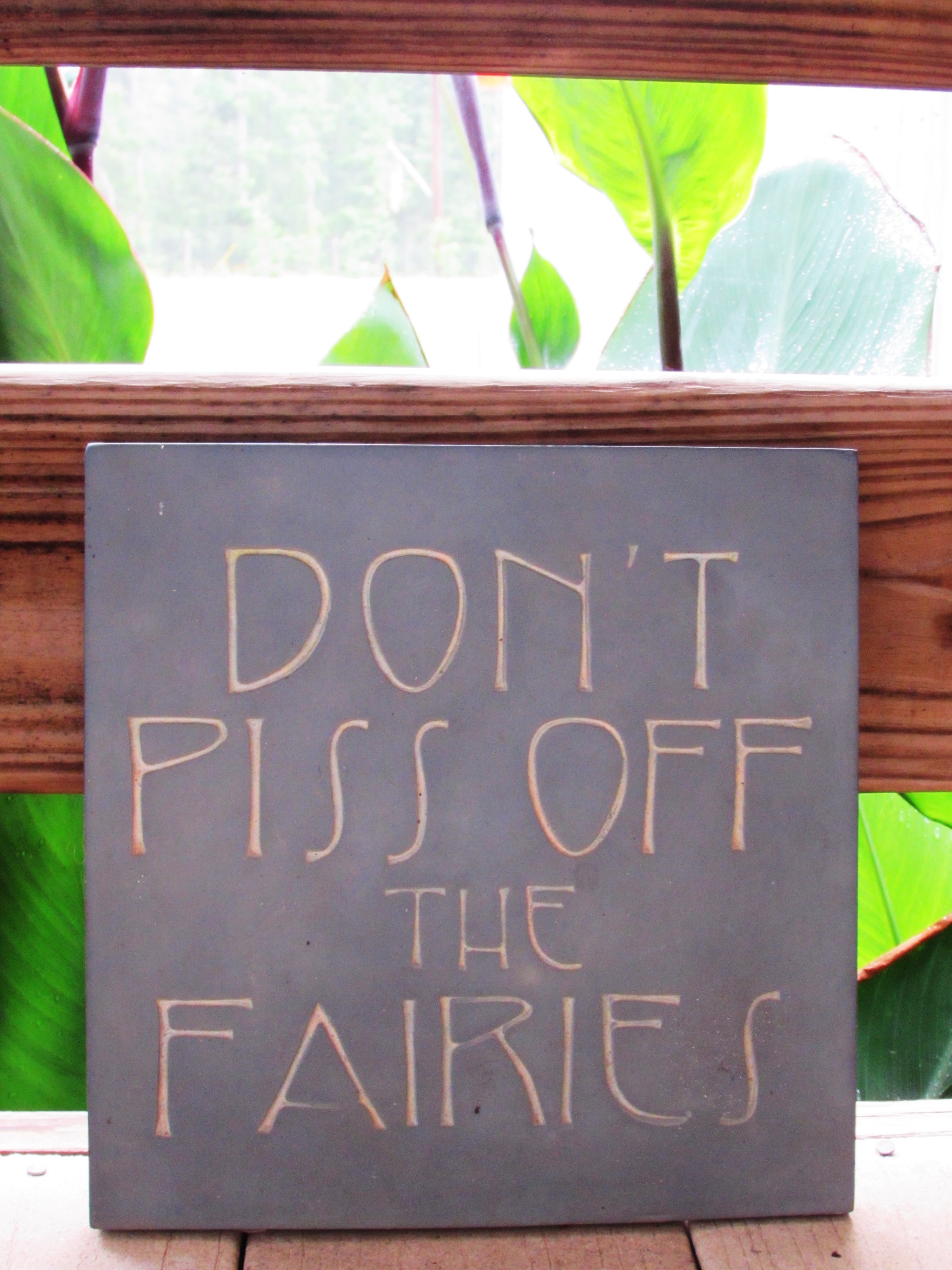 Good Advice on Monday thewickedchicken / August 18, 2014 My little sister has a good sense of humor. She bought me this a few years back for my birthday. It was good advice then and it is good advice now. Because you never know about those fairies lurking in the flower garden. Besides it makes me laugh. 🙂 Thanks Rita, I love ya’! Share this: Click to share on Pinterest (Opens in new window) Pinterest Click to print (Opens in new window) Print Click to email a link to a friend (Opens in new window) Email Like Loading...