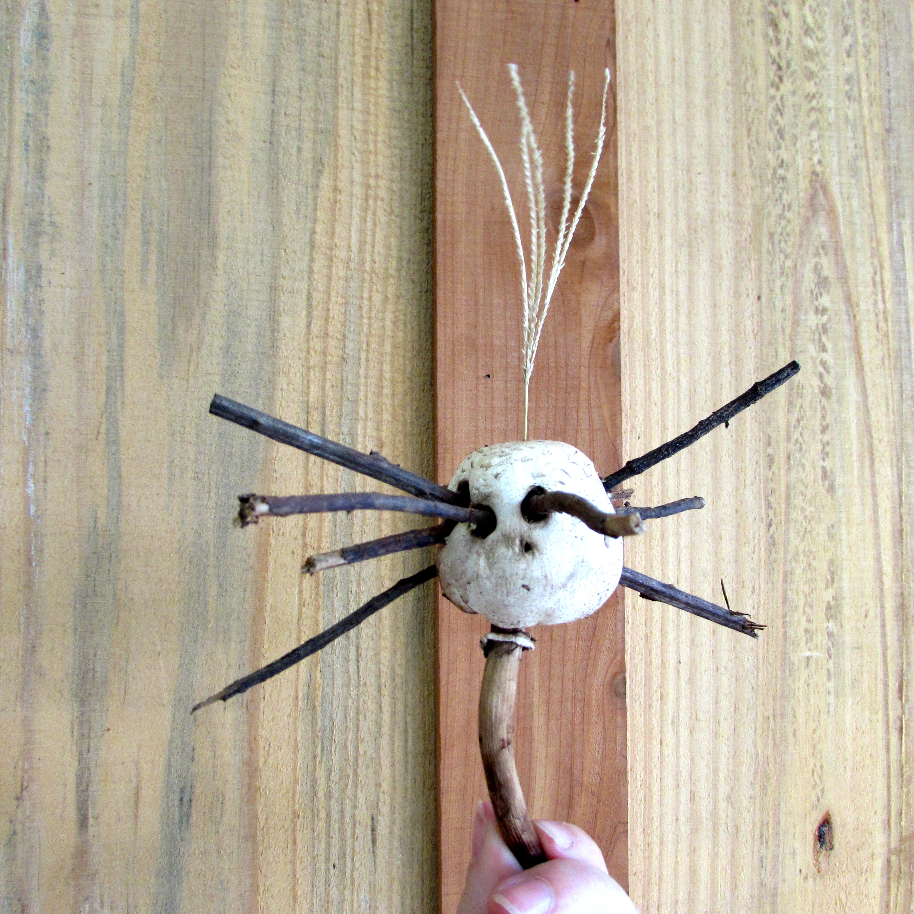 But is actually a mushroom with sticks stuck thru it and some hay jammed on top.