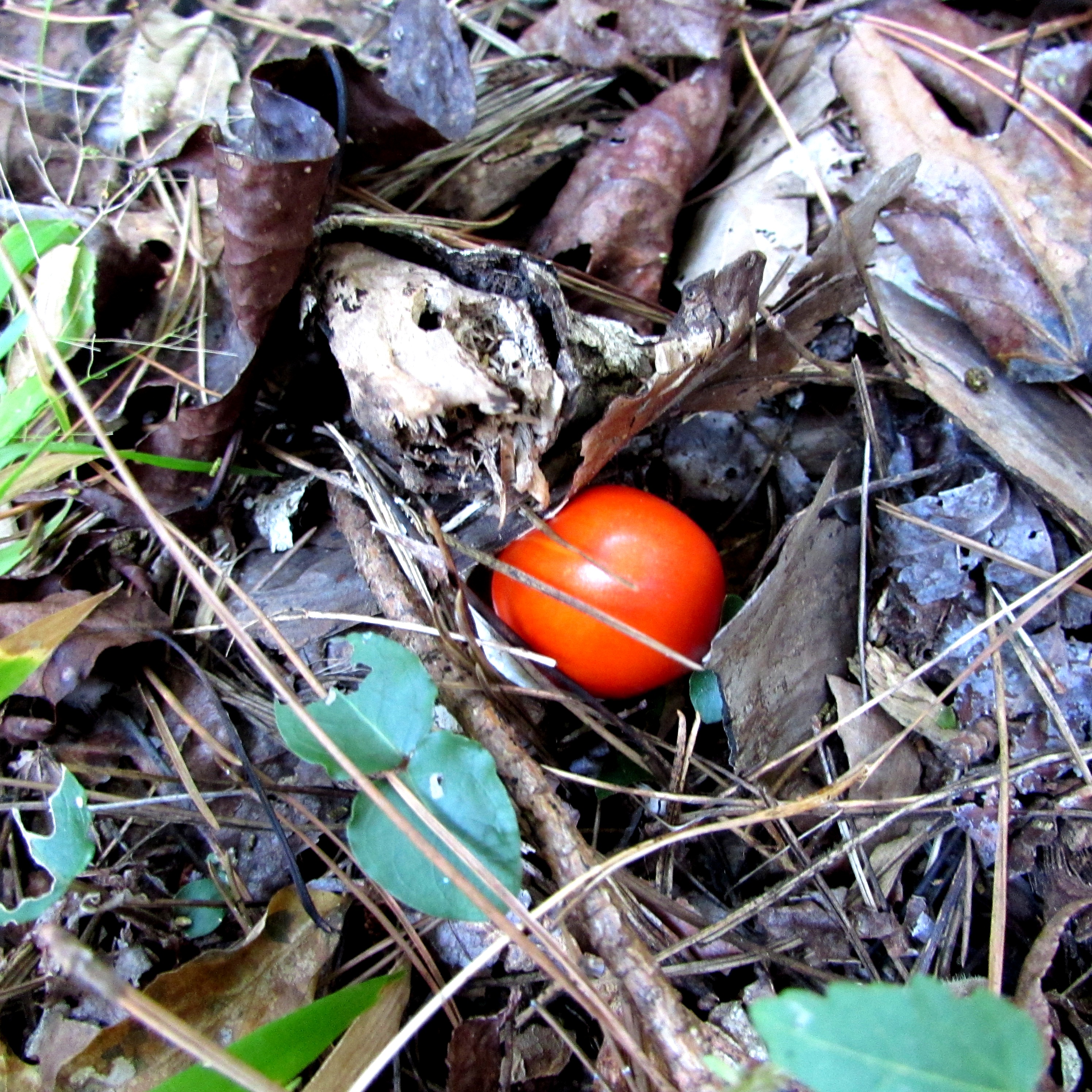 Isn’t this cute? It looks like someone plopped a Roma tomato on the forest floor.