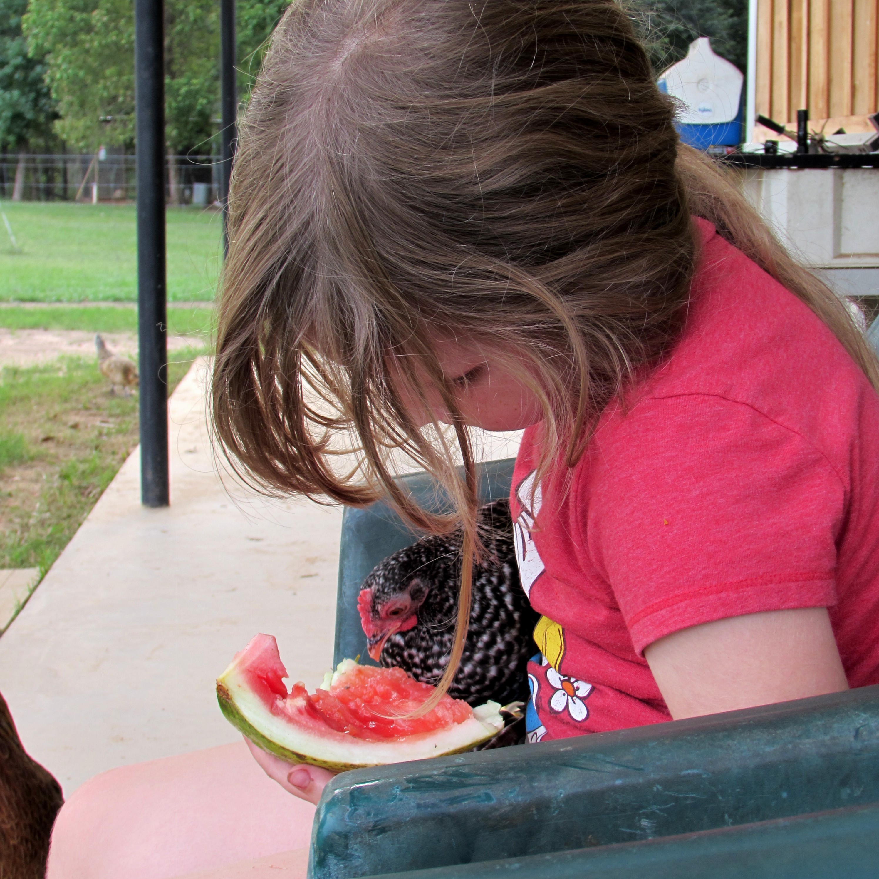 I have a Chicken. I have a Child. I have a Chicken and a Child who are both dearly loved. The Child and the Chicken are both consumers of watermelon. See the evidence below….