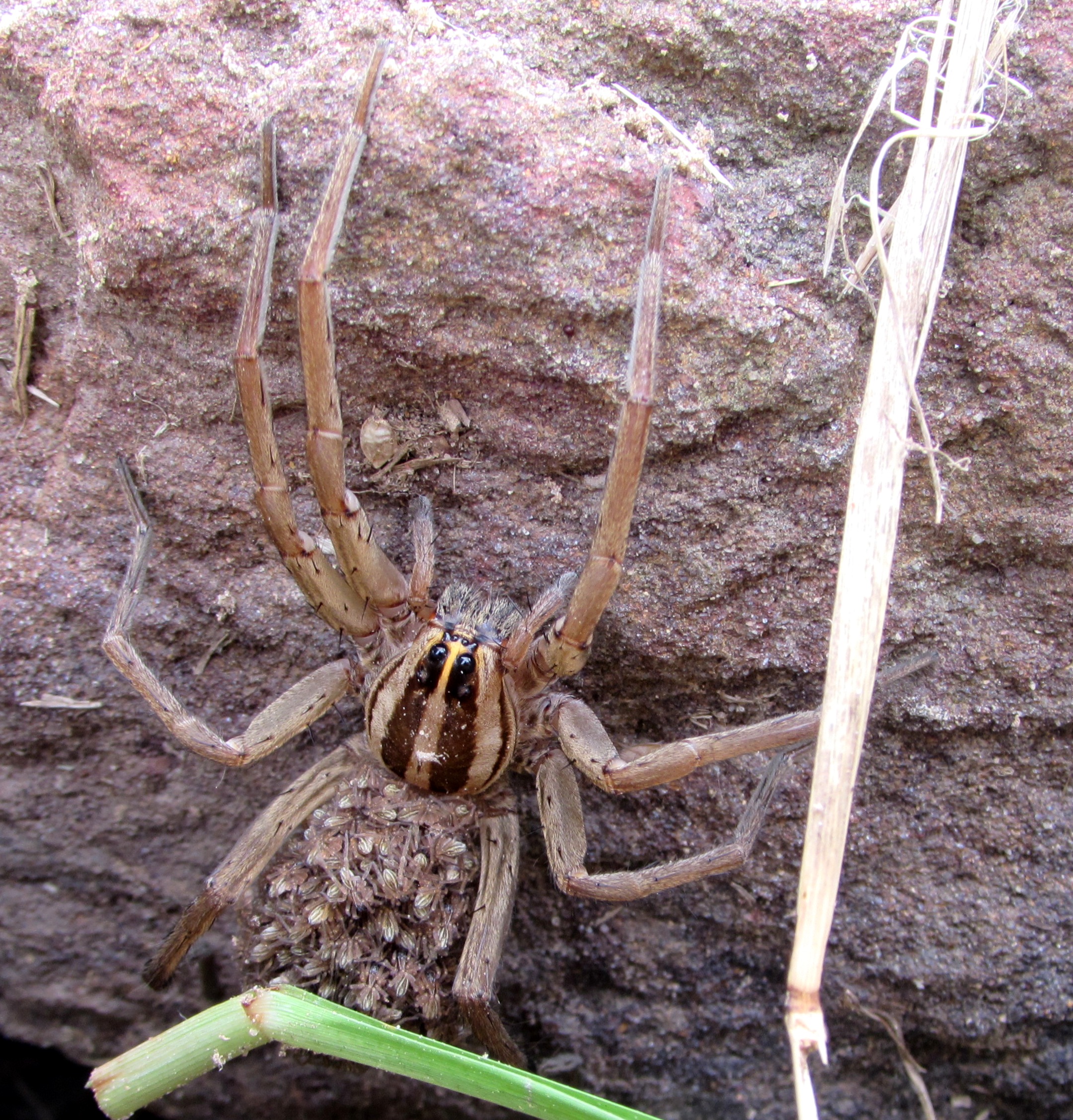 Check out ALL THOSE BABIES! Holy Smokes! Her rear is crawling, literally, with her tiny off-spring. And those giant hairy legs…..and those fangs…..and that super large, fuzzy striped head……..