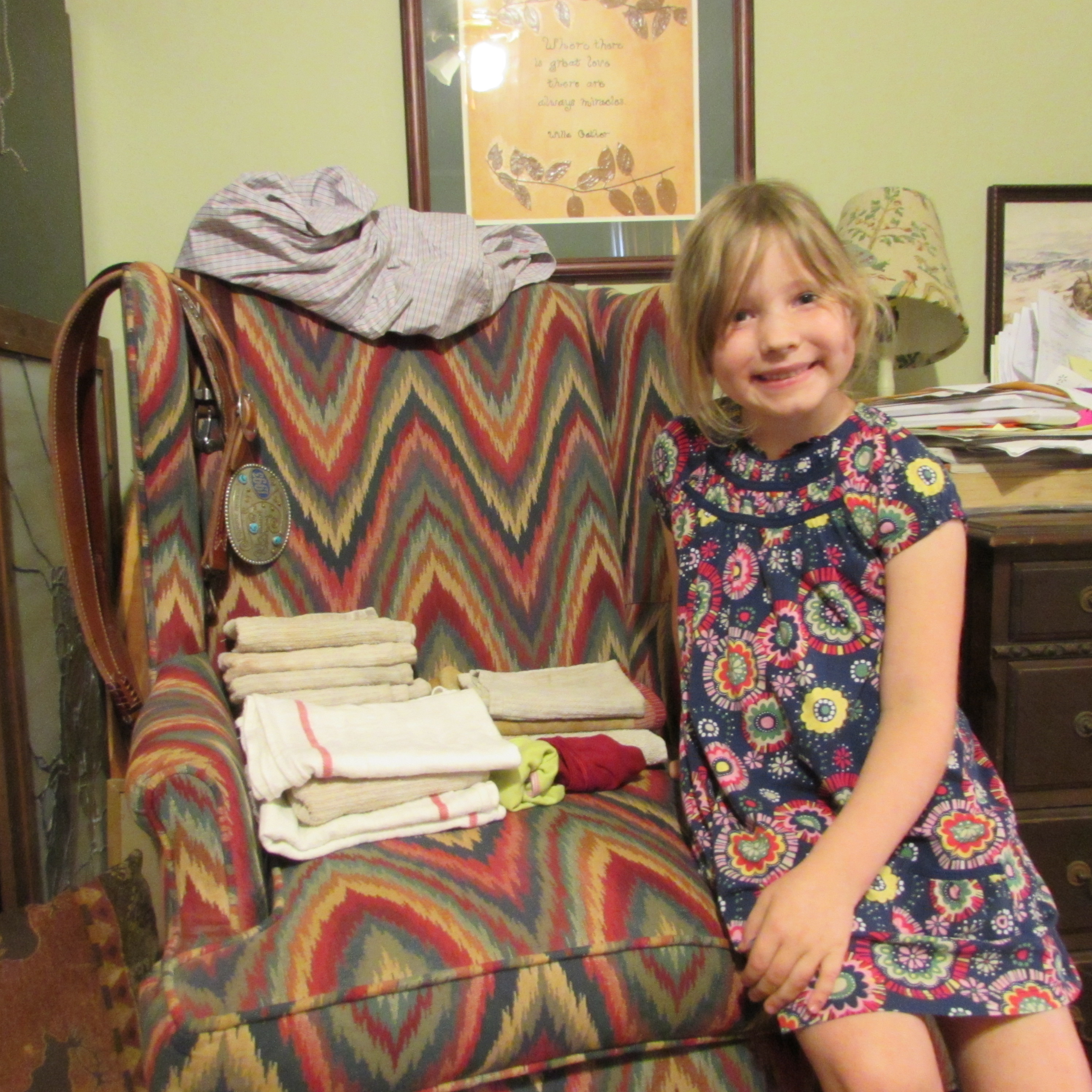Just kidding! Sort of. While Addie’s only real ‘chore’ is to clean her room, and that she does amid protests of epic proportions, tossing around excuses such as “my eye hurts”, in attempts to thwart my efforts at cleanliness, she does love to help. The trick is to never actually ask her for help, I’ve found if I start cleaning she will soon come along and want to assist. There is a serious love of Windex embedded in her soul and I’m no longer allowed to fold towels or underwear. That is her job. Just a few days ago I started on a mountain of laundry and absent-mindedly folded a towel, Addie enters the room and shrieks “Towels are MY job! And be sure to give me ALL the underwear too!”. Yes ma’am, far be it from me to hold anyone back from their calling!