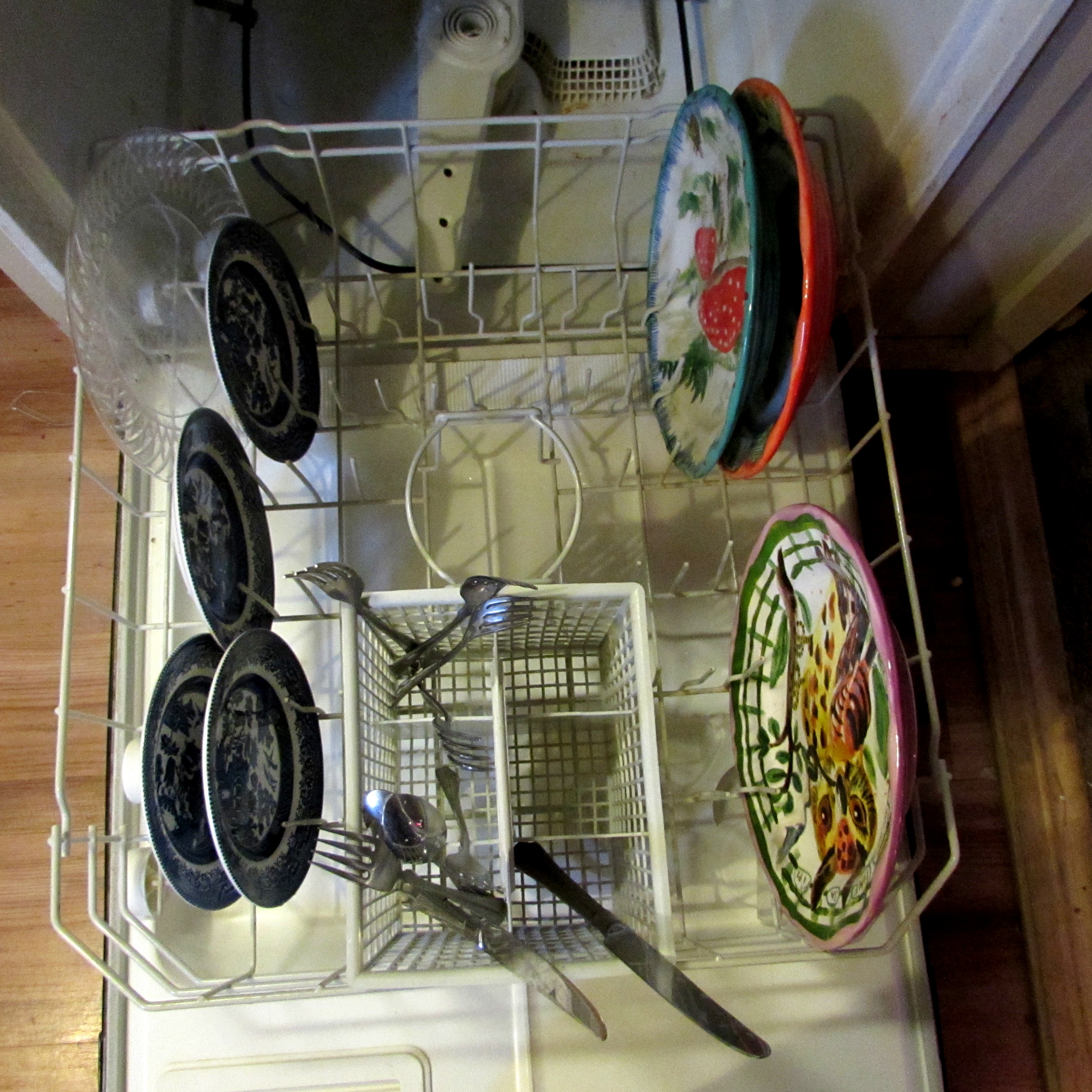 When he loads the dishwasher is looks like a random splattering of dishes, no rhyme or reason whatsoever. I can not abide this. I never say anything. I just always reload it before turning it on. I’m not sure if my reorganization results in more dishes actually fitting into the modern marvel. But is does my soul good to know that the glasses shall be kept company by their own kind throughout their steam bath, same with saucers, dinner plates and bowls. I’m going to say it makes unloading them easier, that more fit and they get cleaner. Even though, in all truth, it is probably just me. That glitch in my brain that forces me to organize dirty dishes.