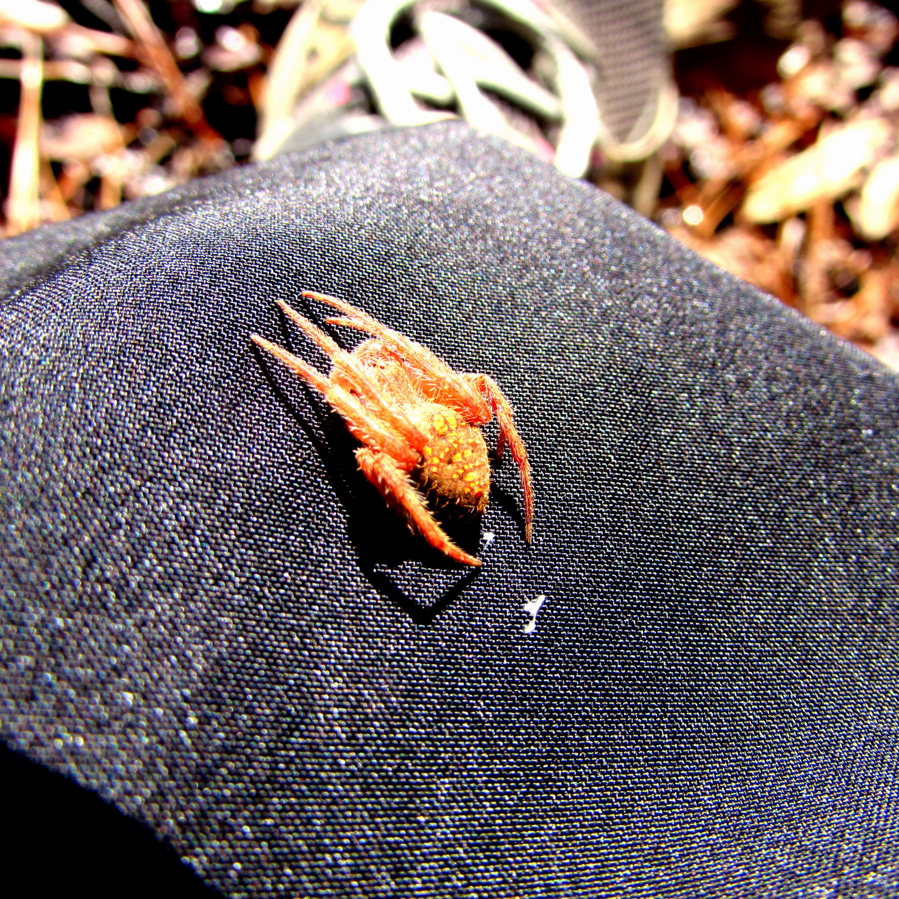So I wander about, glance down and ICK!  Spider on my leg!  It was really okay.  I took 3 pictures then removed him with great care.