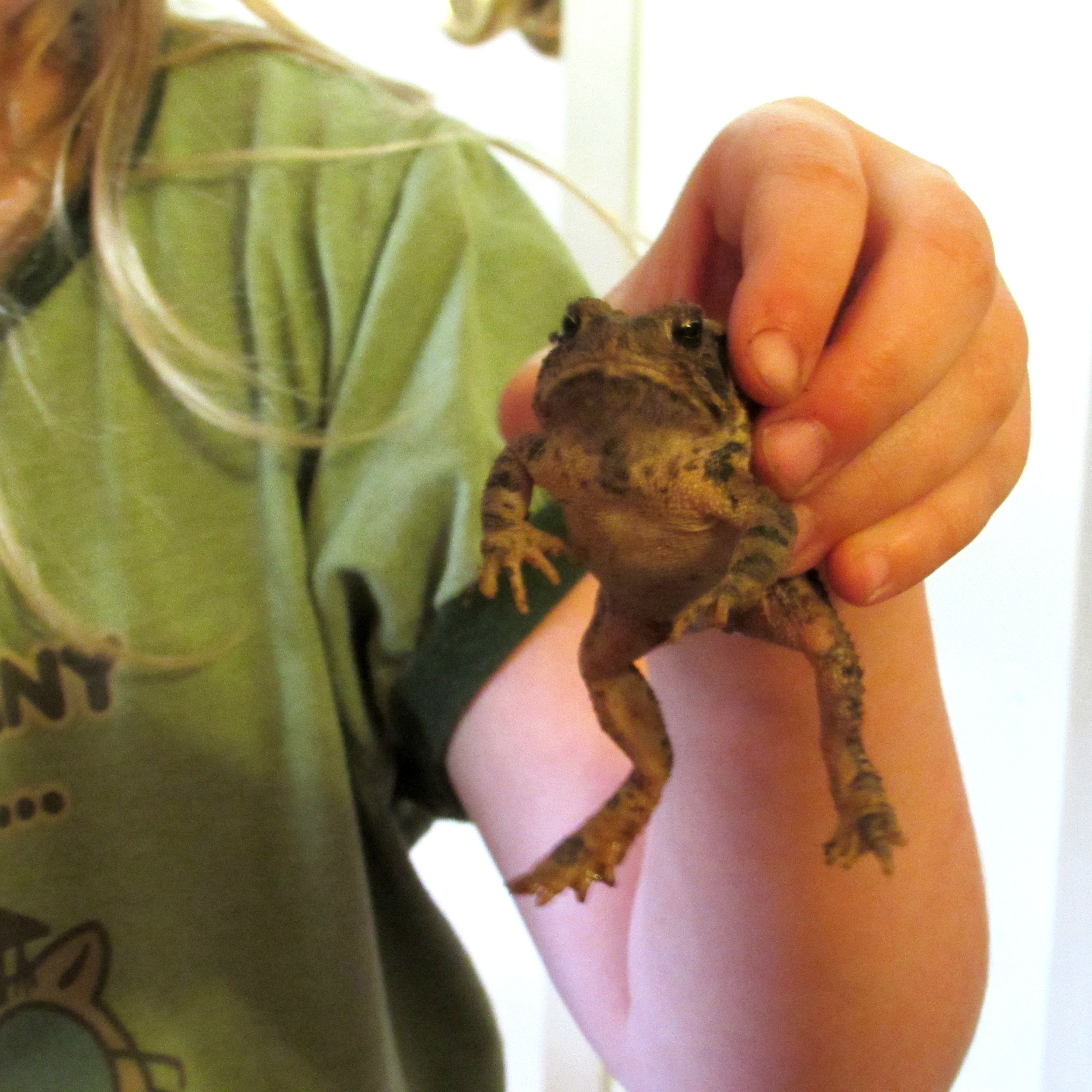 toad addie walkI began in my bedroom with a toad Addie had caught and brought inside to show me.  The poor dear was peeping for his life!