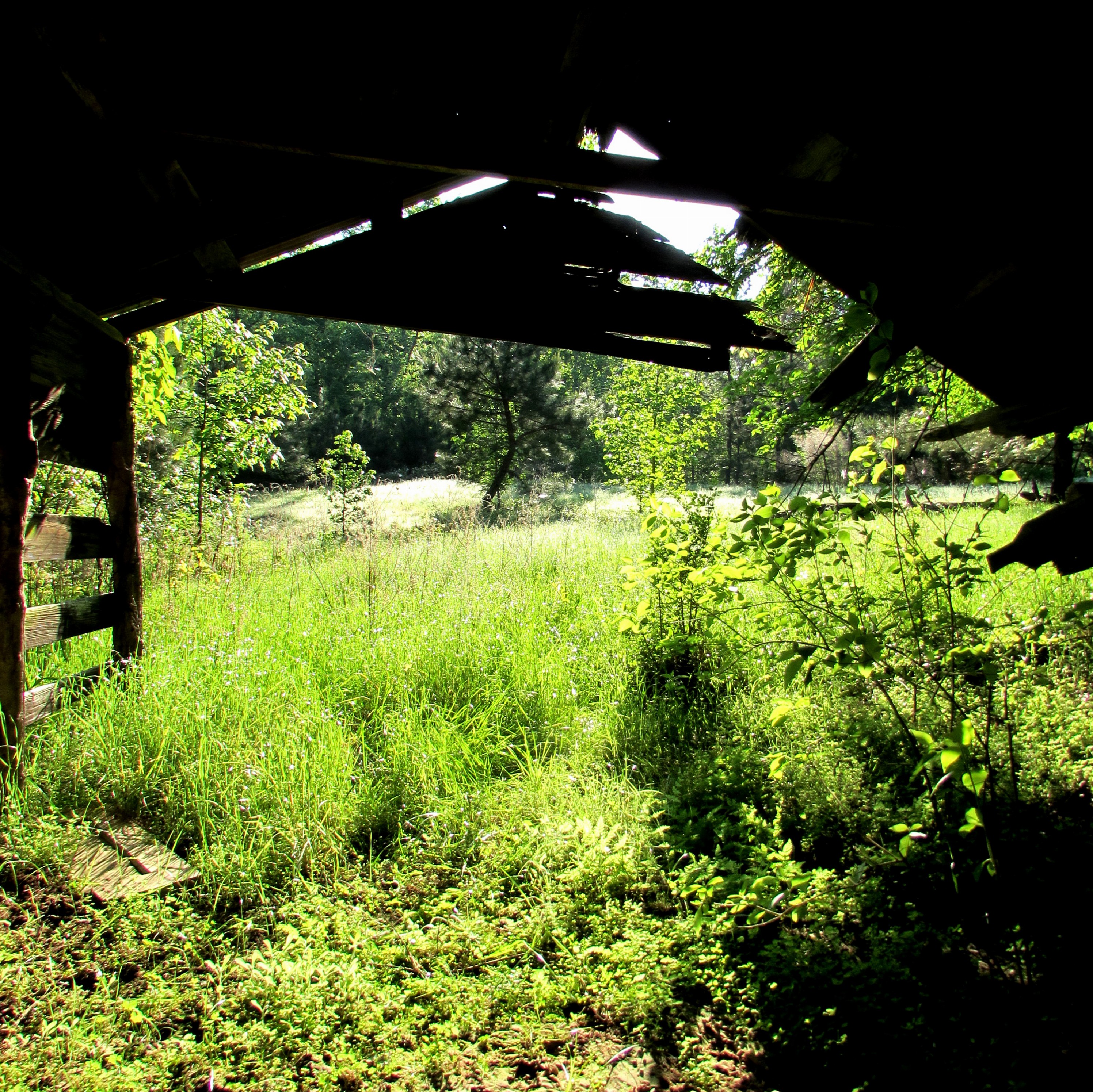 As I was wading thru knee-high, dew-damp grass to get to the barn I found another barn!  Completely invisible from the road.
