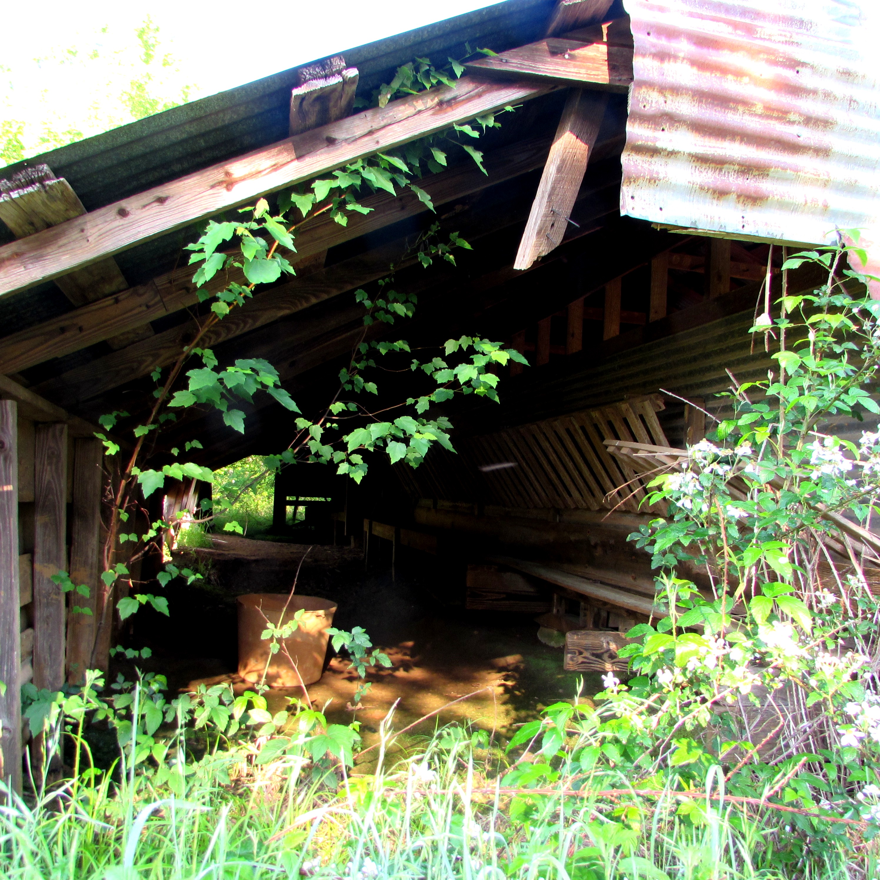 cattle pensNow, quite hidden and shaded by giant pine trees.
