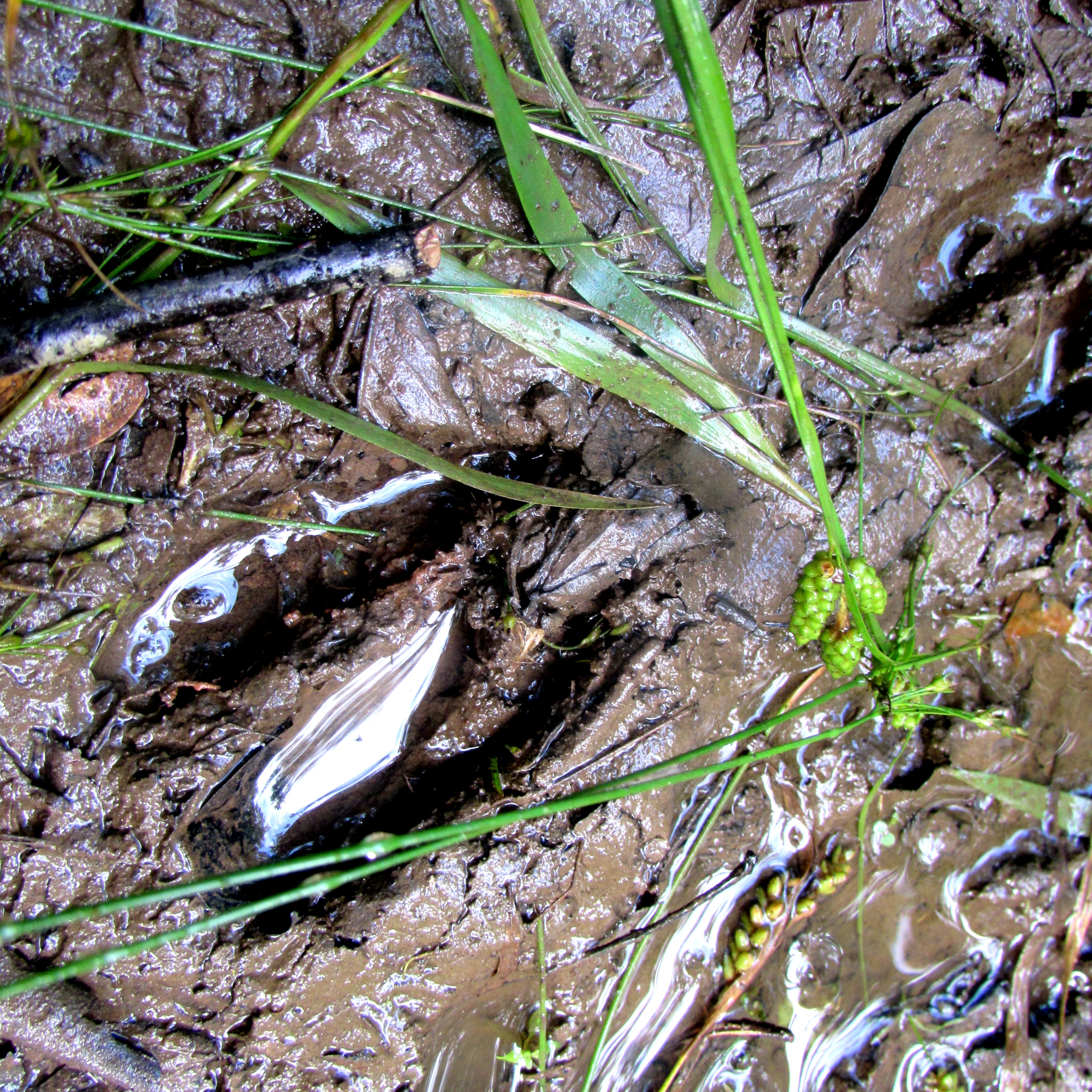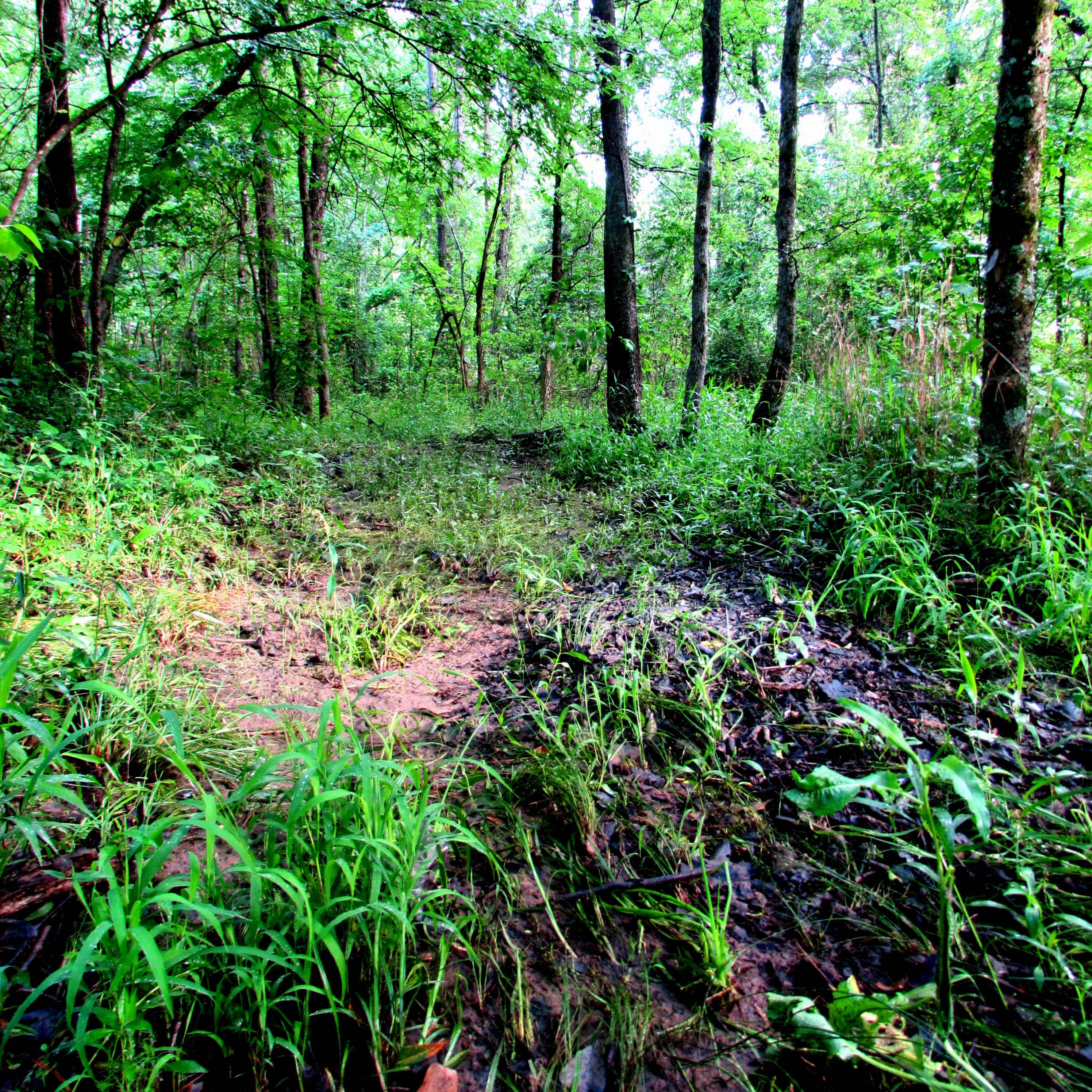 See how it has been flooding and running thru the forest, pushing down the grass?