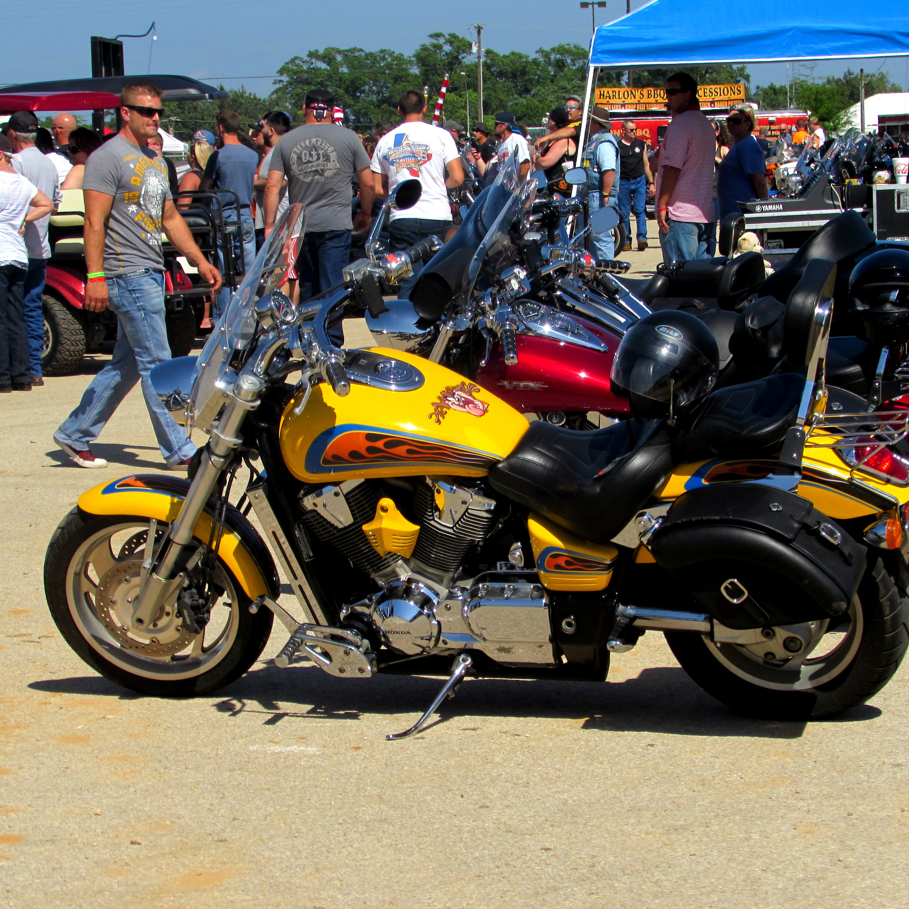 My mom has a picture of me when I was about 6 years old, riding my dad’s Harley with him. That was the coolest I’ve ever been and the pinnacle of my biker days. Except for a brief period in my early 20’s when I found myself in possession of a “crotch rocket” I couldn’t operate. But that is another story. Todays story is about a biker rally in Nacogdoches, Texas. My friend John, also known as my work husband due to the fact I spent more time with him than any other human for around 10 years, is a BBQ genius and competes regularly. Not only does he compete, he usually wins! His chicken is so delicious you will want to faint! Only don’t. Because if you faint others will eat it all up before you can revive. So John was competing at this biker rally cook-off and invited me to come check it out. As I had never seen him in action I took him up on the offer and headed to Nacogdoches, the oldest town in Texas.