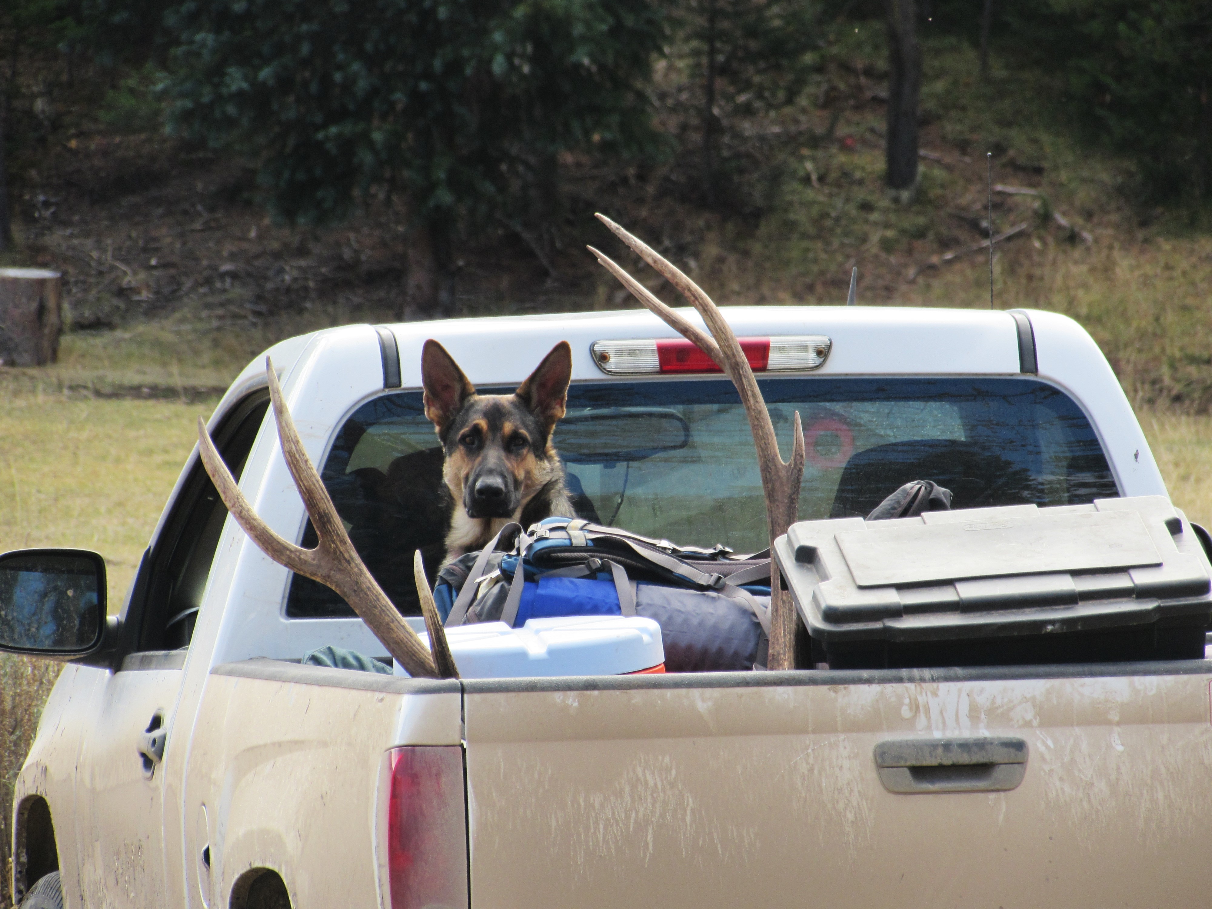 Meat on the pack horse and headed back to camp, Rita proved her toughness by packing the head out on her shoulders.  Normally the horse does that for us but the ravine walls were so steep we barely made it up with the meat, the head would have been a disaster.  I felt like Indiana Jones, only less cool.  But, we made it.  We always do!  And we put that carcass pole, the one I told you about last week, we put it to good use.