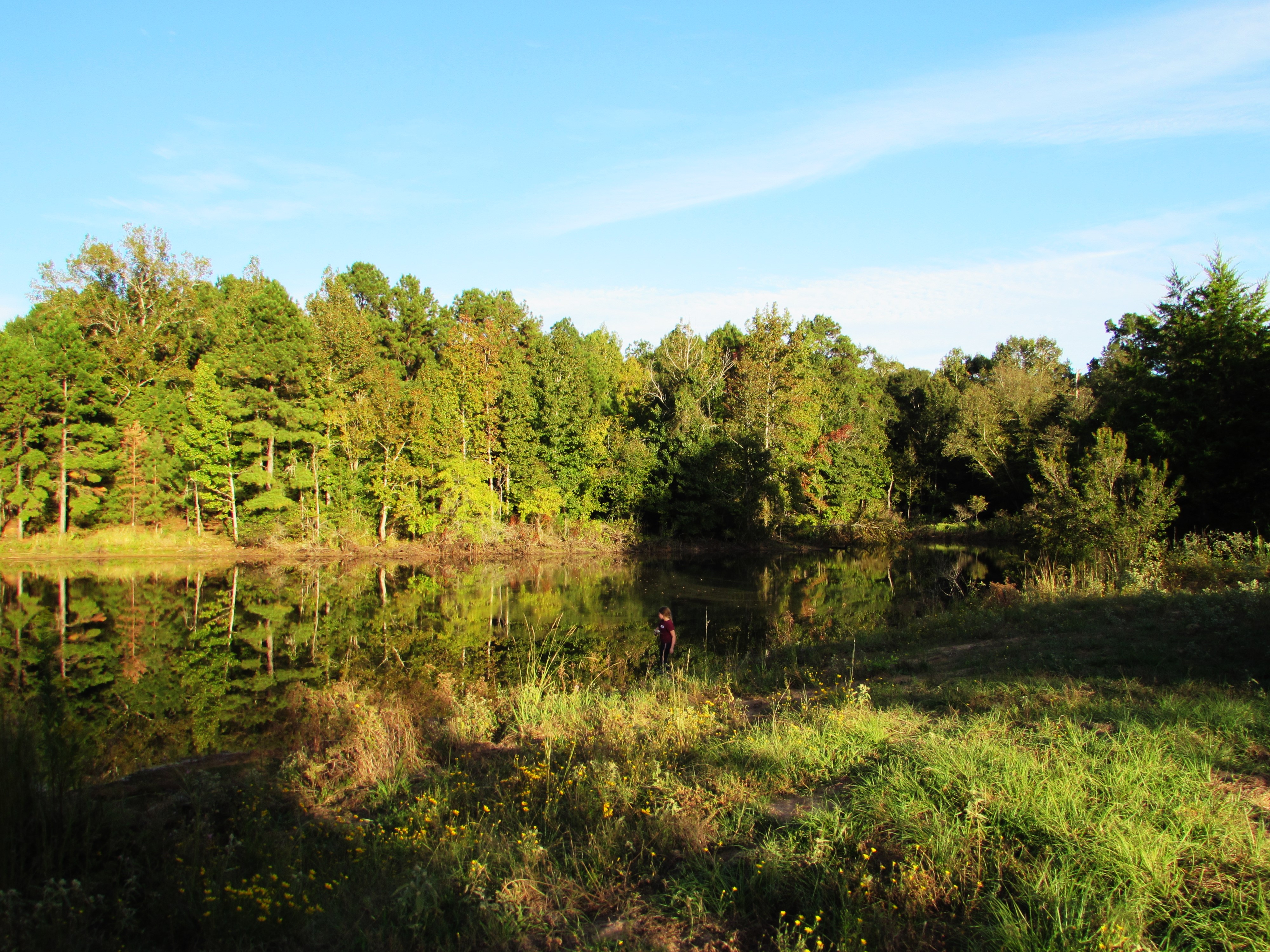 However, I do have time to fish. There are drinks and snacks and lots of mosquito repellent. So, Addie and I opted to fish while the boys sweat it out with the biting insects. Adjacent to our new place is 240 acres which we were able to lease, and on said lease is a nice, big pond. I guess I can stop saying “Our new place.” We’ve had it almost 6 months. Anyway.