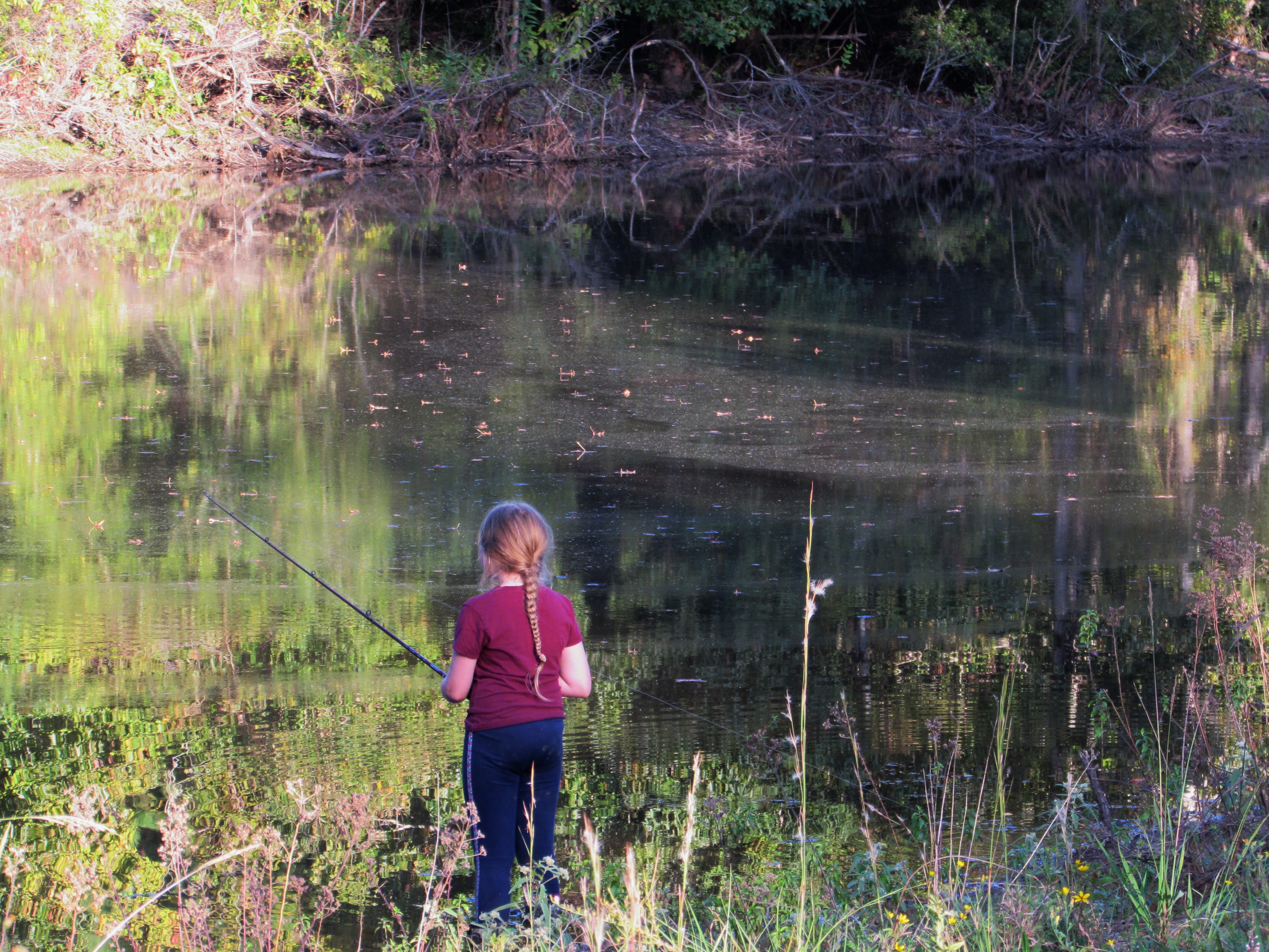 There is a lot of moss in one section, this threw Addie off. But not for long! Her casting skills improved quickly.