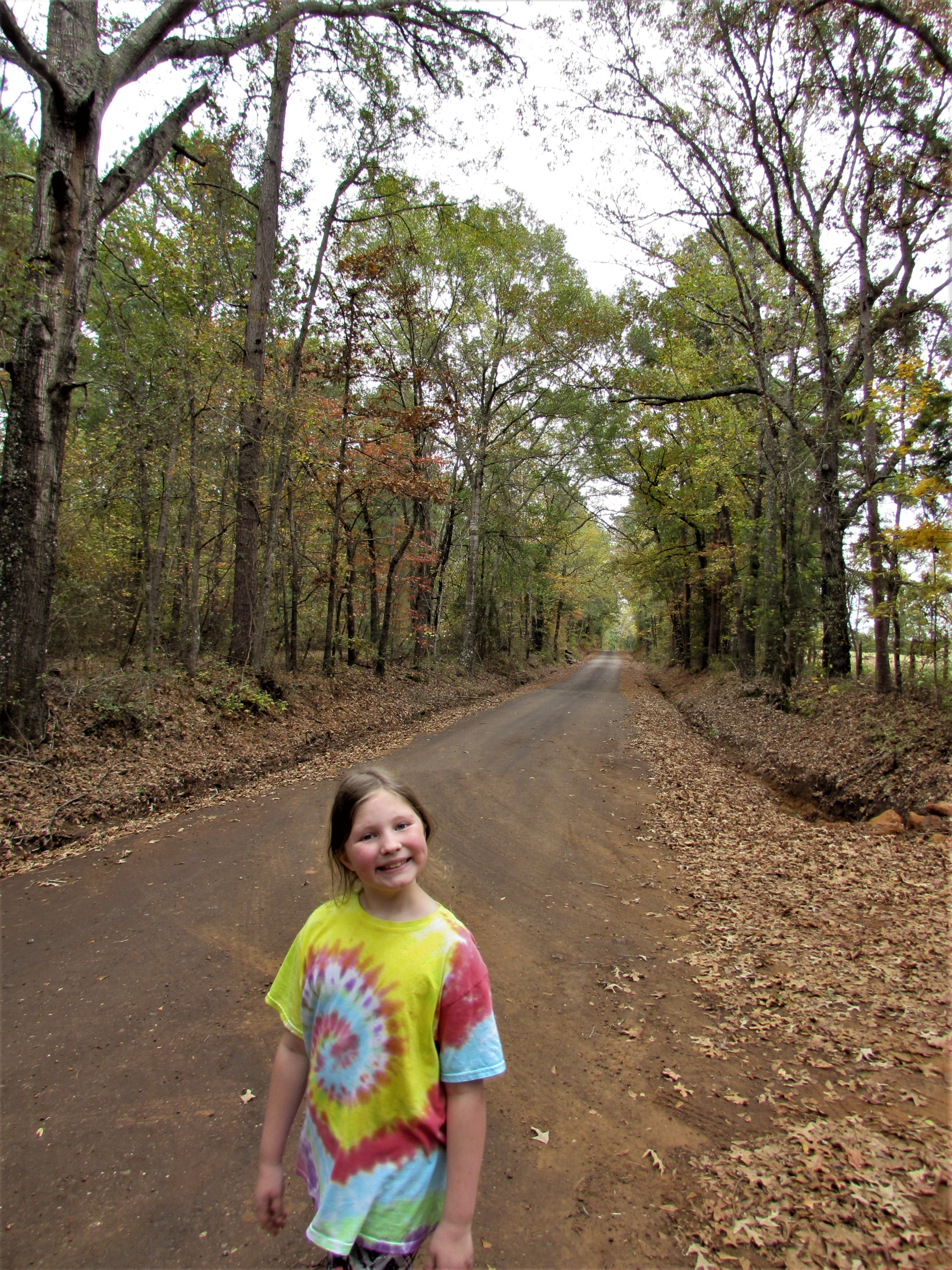 Just don’t get stopped with that new license picture! Don’t want the cop fainting! The place you live looks so peaceful! I don’t know how Mr/Ms crawdad could have a bad day living there! The road behind little human is beautiful & she makes it prettier! Such a beautiful part of Texas!