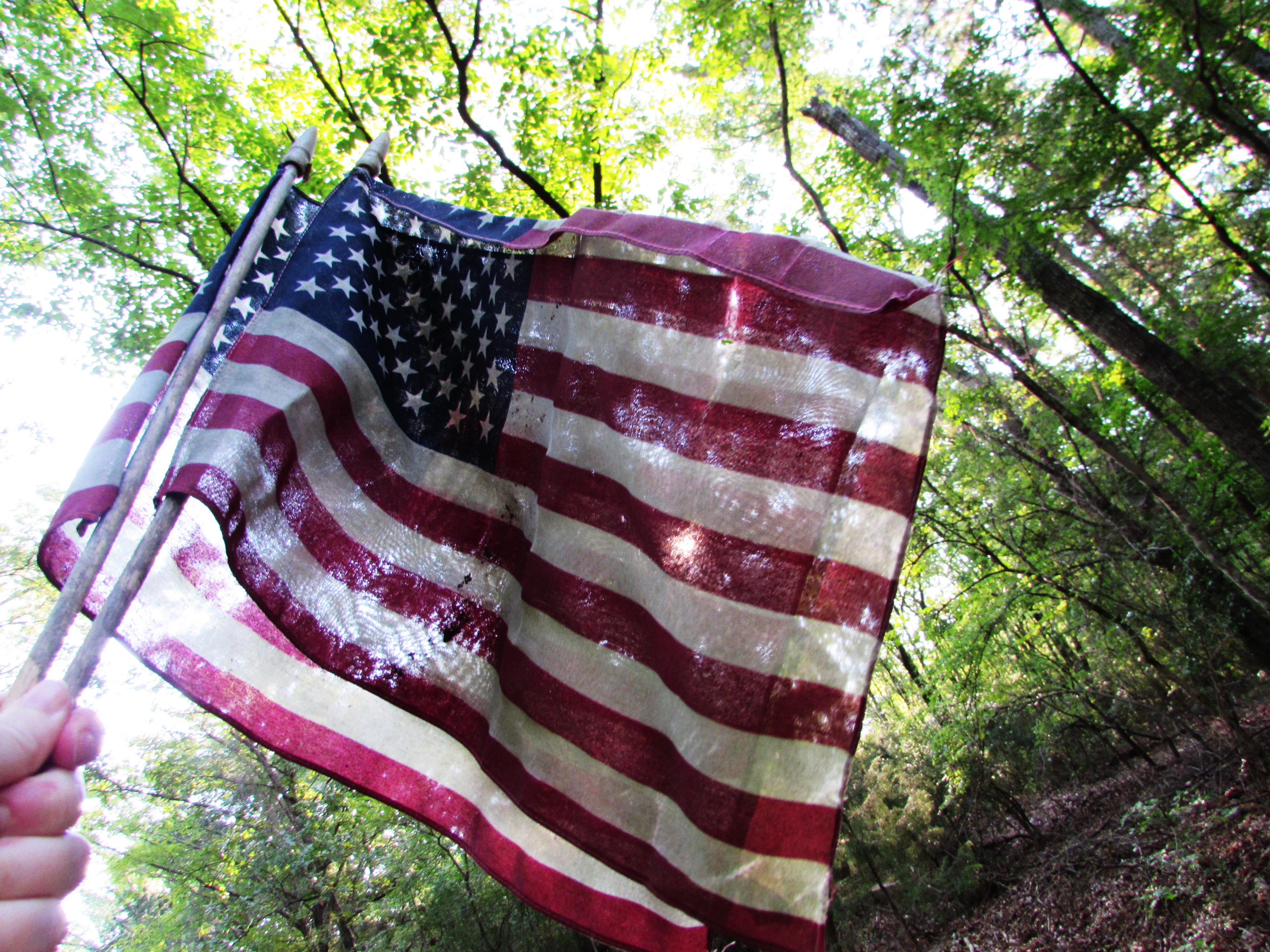 Not only did the trash make me mad, it was made worse by being in a creek and there were mole poison packages. Let’s kill the fish and frogs and lizards and make the horses and cows and deer and everyone else sick, shall we? AND to top it all off, there were also 2 American flags. I was able to reach them, and yes they were only cheap-o little ones but that isn’t the point. The point is respect, or in this case, lack of respect. I took them home.